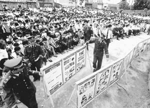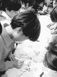 ![]()     位于海南省西部的临高县调楼镇是个鱼米之乡,然而毒品的侵害使这里的治安状况每况愈下。通过两年的不懈努力,调楼公安边防派出所在全镇6个村中创建了4个“无毒村”,去年调楼镇被海南省评为“无毒社区”。他们成立以公安边防派出所为主,镇政府、村委会和村民代表为责任人的“禁毒领导小组”,以村民小组和街巷为单位建立禁毒信息点,使全镇的禁毒工作一环扣一环。     上图  群众的威力:3000多名各界群众向毒品宣战。     中图  立下誓言:远离毒品,珍惜生命。     下图  泪的控诉:“珍爱生命,拒绝毒品”大型图片展震撼着每个人的心灵。